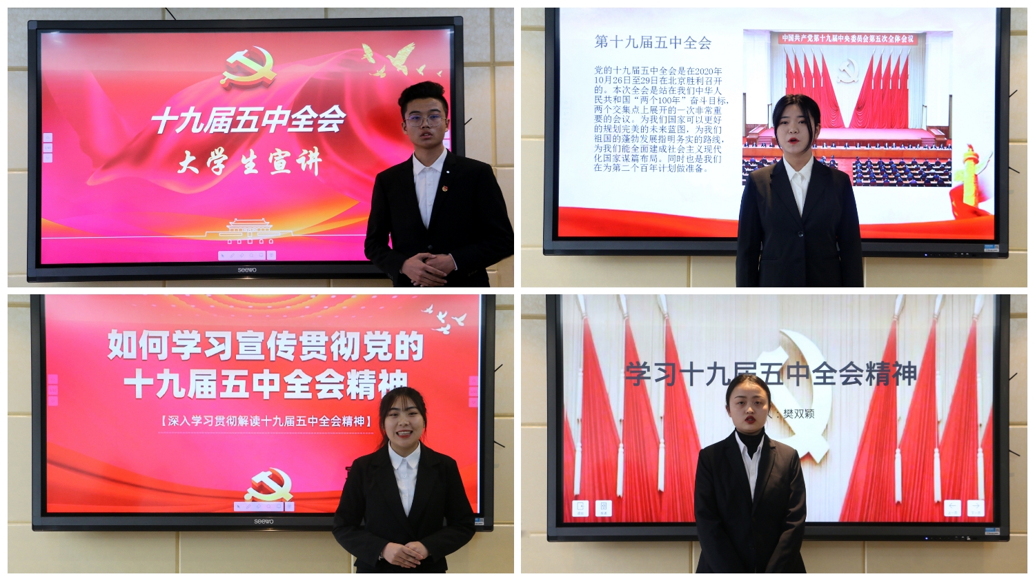 “十九届五中全会”大学生宣讲团的成立极大的促进了我院大学生思想政治教育工作,充分体现了我院“向日葵”育人计划的成果,有力推动我院“厚德育人工程”进程。
