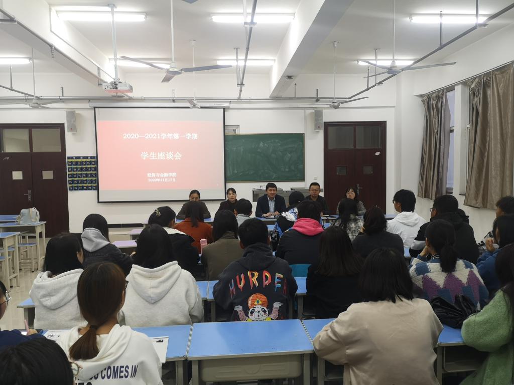 为加强教学质量监控,全面了解本学期课堂教学及教学管理情况,及时发现和解决教学工作中存在的问题,促进教学质量稳步提升,11月17日下午,经金学院在综合楼714教室召开了2020-2021学年第一学期学生座谈会。学院副院长陈冬、金融系系主任杜逸冬、金融管理教研室主任邓婕、互联网金融教研室主任路涛、及学院师生代表40余人参加本次会议,会议由教学科科长徐文瑞主持。