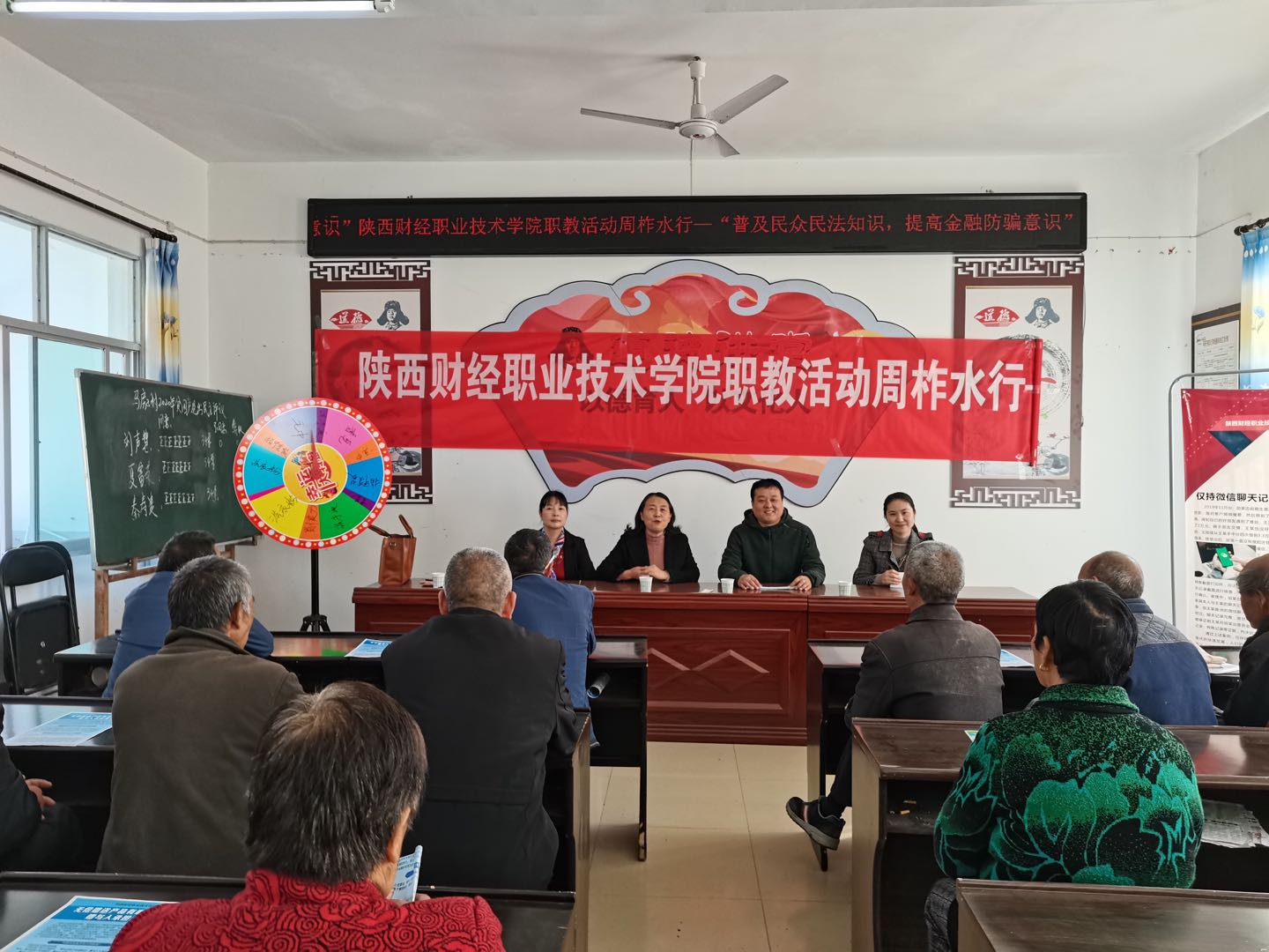 11月13日,经济与金融学院院长景海萍带领张力、杜逸冬、王华三位教师,来到我院扶贫帮扶村——柞水县乾佑镇马房子村,对当地民众开展了民法典与金融防诈骗宣传活动。此次活动旨在让贫困地区民众近距离了解和关注职业教育、体验和参与职业教育、共享职业教育的发展成果,也是为全面贯彻落实《陕西省教育厅等十部门关于做好2020年职业教育活动周相关工作的通知》(陕教〔2020〕176号)文件精神而精心组织的一次扶贫扶智活动。