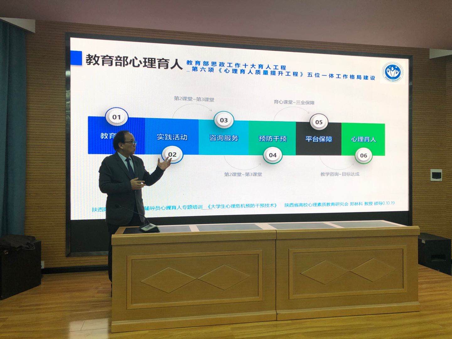 为了提高我院《心理健康教育》课程教师的教学水平,选拔优秀教师代表参加2020年10月底陕西省首届心理健康教育课程教学大赛。同时为了全面提高辅导员、班主任对学生心理危机事件的识别和干预能力,有效预防学生心理危机事件的发生。10月19日下午,由学生处牵头在继续教育中心培训厅举办了“心理健康教育课程教学大赛暨学生心理危机预防与干预培训”。活动特邀教育部心理学精品课程评审专家,陕西省师德标兵,陕西省高校心理素质教育研究会郑林科会长莅临指导。我院全体辅导员和班主任近80人参加了此次活动。