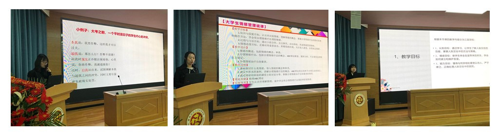 心理健康教育课程教学大赛校级初赛于10月7日举办,11名专兼职心理健康教师参加了初赛,参赛率为69%,王潇雅、乔乐、刘歆语三位专兼职心理健康教师脱颖而出。本次比赛为校级决赛,比赛现场气氛严肃而紧张,每位参赛教师都能够紧紧围绕大学生心理健康教学内容展开教学,充分运用启发、互动和案例等教学方法,语言富有感染力,讲解生动活泼。赛教结束后,郑林科教授进行了点评,他对本次大赛的组织和3位参赛教师的教学演示给予了肯定,对省委教育工委举办大赛的思路进行了详细解读,同时他着重从参赛教师教学方法和技巧,教学语言和效果以及仪表仪态方面提出了指导意见。