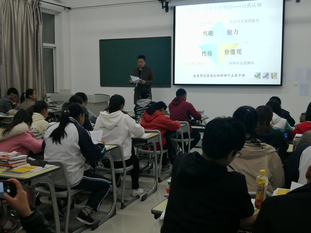 经济与金融学院团总支针对在校18级、19级学生进行了多场《生涯规划与自我认知》讲座。讲座由经济与金融学院学生工作科副科长许斌主讲,以探知自我、认识自我为主线,从兴趣、性格、价值观、能力四个方面展开自我探索。同学们纷纷表示受益匪浅,讲座收效甚佳。