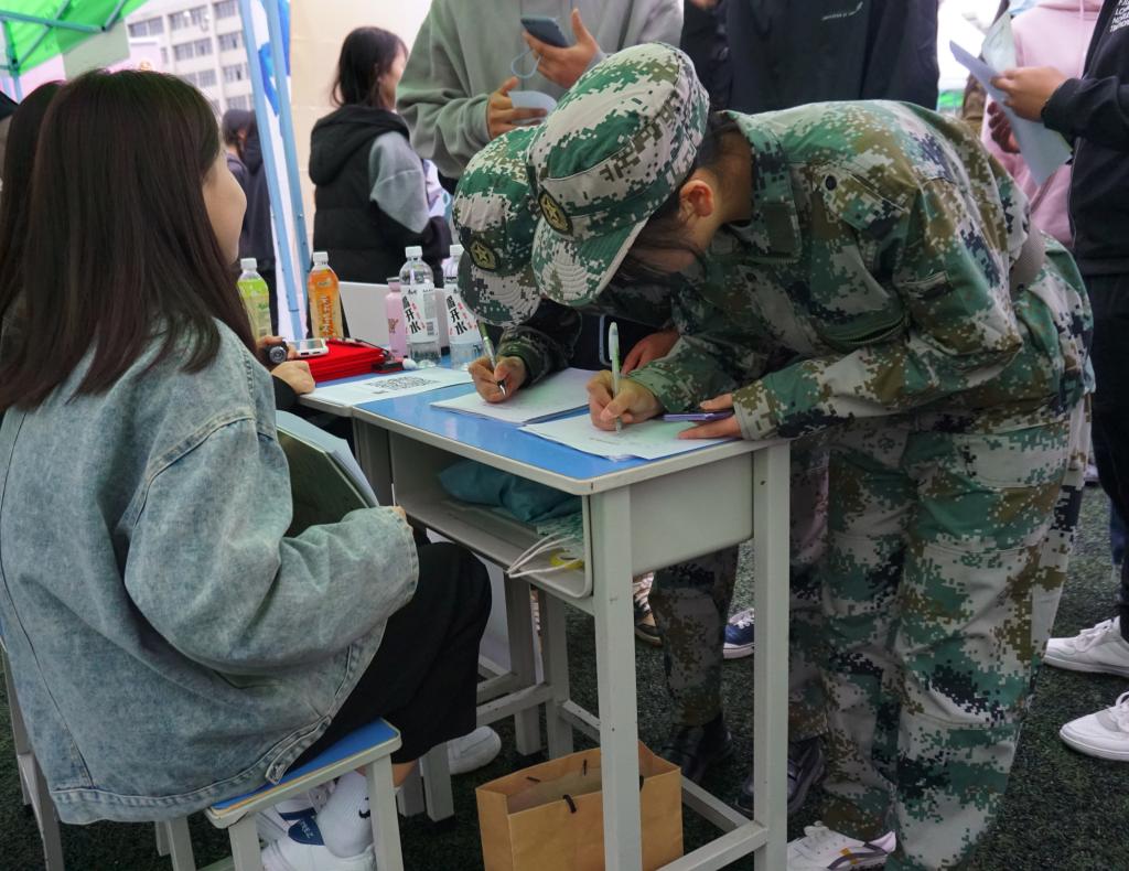 39个社团展位组成的主会场前排起了长长的队伍,同学在自己喜欢的展位前耐心听工作人员的讲解,积极参与趣味小游戏,现场气氛热烈、井然有序。