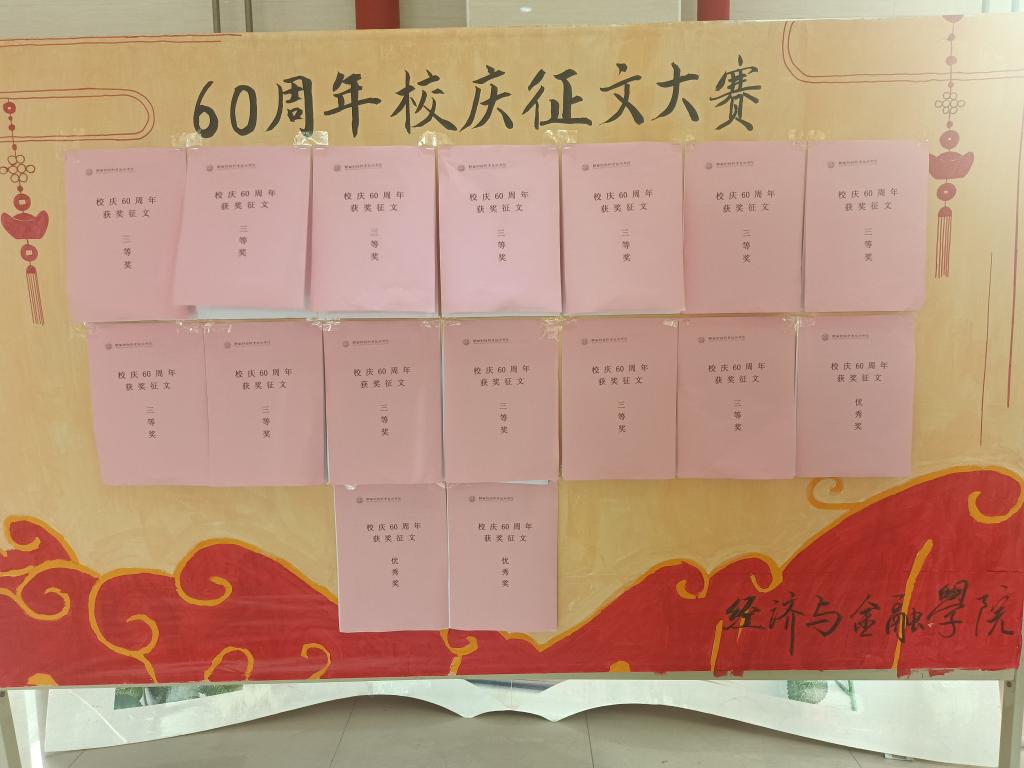 10月14日,在综合楼一楼大厅展播“千名学子秀才艺”系列活动之“迎校庆•我与陕财的故事”主题征文大赛作品。此次征文大赛由学院团委主办,经济与金融学院团总支承办的,学子积极投稿踊跃报名,经过两周的作品集征,共收到作品近百篇,最终产生获奖作品30篇,金融学院微信公众平台同时展播。