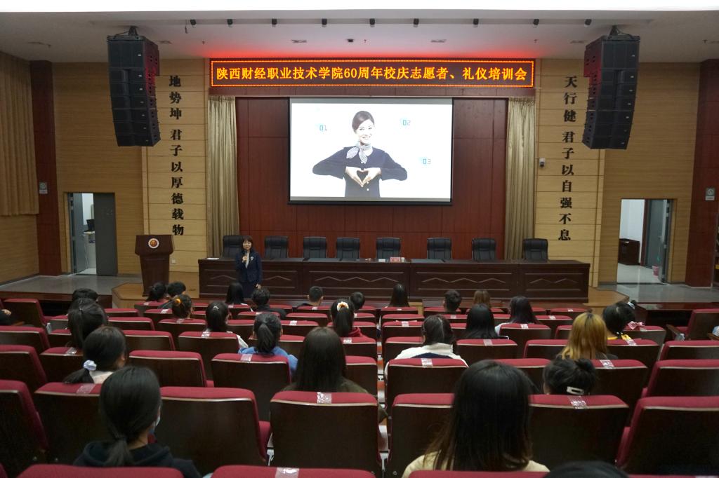 为确保我校60年校庆期间的各项服务工作顺利开展,进一步提升校庆礼仪和志愿者的综合素质,展现陕财学子良好的精神面貌,团委于10月8日在学术报告厅举办了校庆礼仪和志愿者培训会,党委组织部副部长、全国职业核心能力认证礼仪训练师张洁进行主讲,本次培训会由团委正科级干部连静主持,150余名学生参加。