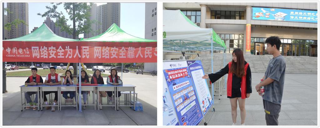 9月15日大数据与人工智能学院在综合楼前搭建一排排小帐篷,为前来咨询网络安全的同学,悉心解说。并且以各具特色的小活动,让网络安全法律知识深入每位同学的记忆里。此次讲解我很多同学也学习到网络道德规范,懂得基本的对与错、是与非,增强网络道德意识,分清网上善恶美丑的界限,激发对美好网络生活的向往和追求,形成良好的网络道德行为规范,做到网上不吐脏字,有话好好说,有理耐心讲。