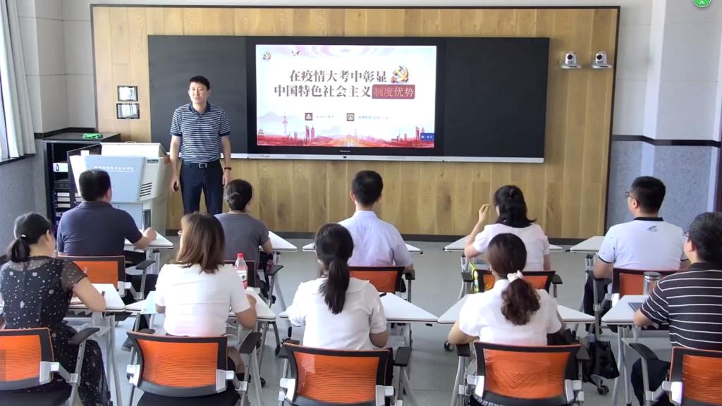 陈冬以《在疫情大考中彰显中国特色社会主义制度优势》为主题,为全体党员上了一堂专题微党课。他从全球疫情状况谈起,从五个部分解读集中彰显制度的五大优势:一是党中央的核心领导优势。二是强大的政治动员优势。三是中国共产党的组织优势。四是党密切联系群众的优势。五是全国一盘棋思想的优势。经金学院学生党支部组织委员许斌、教师党支部统战委员韩梦娟分别以《抗疫彰显制度优势》和《让党旗始终高高飘扬》为主题为全体党员讲授微党课。许斌从彰显领导力量、彰显思想力量、彰显国家力量、彰显人民力量和彰显道德力量五方面讲授了面对疫情社会主义制度的优越性。韩梦娟从充分发挥基层党组织在疫情防控阻击战中的战斗堡垒作用等方面进行微党课讲授。通过党课学习,广大党员充分认识到在面对重大突发事件时社会主义制度的强大优越性,更加深刻认识和理解中国特色社会主义的制度优势,进一步增强“四个意识”、坚定“四个自信”、做到“两个维护”,进一步增强战胜新冠肺炎疫情的信心和决心。