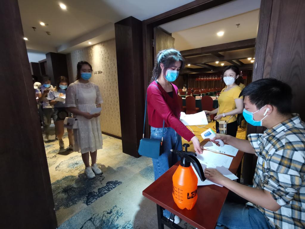 为确保本次会议在疫情防控期间安全召开,会前各辅导员老师对所辖学生进行返回前14天体温监测和行动轨迹摸排,确保无中高风险地区学生返回。进入会场前,我院学生党支部严格排查,测量入场学生体温,查验健康绿码,统一发放口罩,消杀随身物品,会议全程间隔就坐,严格风险控制,确保疫情下这场特殊的发展暨转正大会顺利召开。