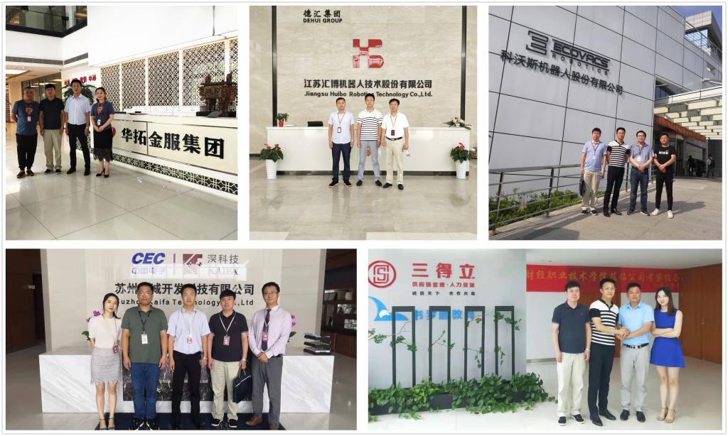 王刚一行先后走访了新荣记连锁餐集团(上海区域)、嘉兴新铭行房地产经纪有限公司、华拓金服集团昆山交付基地、交通银行信用卡中心等地。在苏州人力资源产业园区,相关领导陪同走访了江苏汇博机器人技术股份有限公司、科沃斯机器人股份有限公司、深科技苏州长城开发科技有限公司、江苏三得立供应链管理有限公司以及江苏兰仕德管理咨询有限公司,深入了解了苏州当前企业发展方向、技术与用工需求等情况。随后,双方进行了座谈,企业方对我院的办学理念、办学成果,以及毕业生的综合素质和能力水平给予了很高的评价,表示愿意接纳更多我院2020届毕业生到企业实习、就业。王刚代表校方对企业表示了感谢,详细介绍了学院近年来办学情况和毕业生就业情况,邀请企业在合适的时间来我院参观、交流,并希望双方在原有合作的基础上加强沟通交流,深入校企合作,扩大规模和深度。