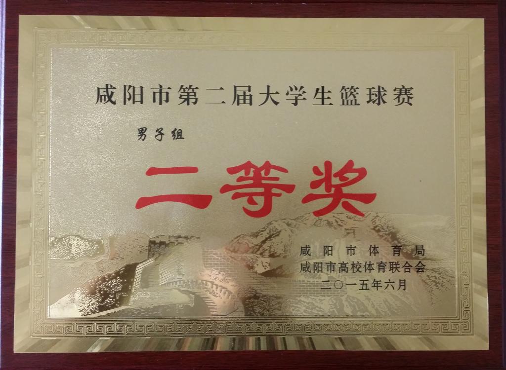 由咸阳市体育局、咸阳市高校体育联合会主办的第二届咸阳市大学生篮球联赛,于2015年6月5日在陕西国际商贸学院举行。本次比赛共有九所驻咸高校的11支篮球队参加,经过两周多的比赛,我院代表队最终取得了二等奖的成绩。袁永彦老师被大会组委会评选为优秀教练员,穆凯同学被评为优秀运动员。