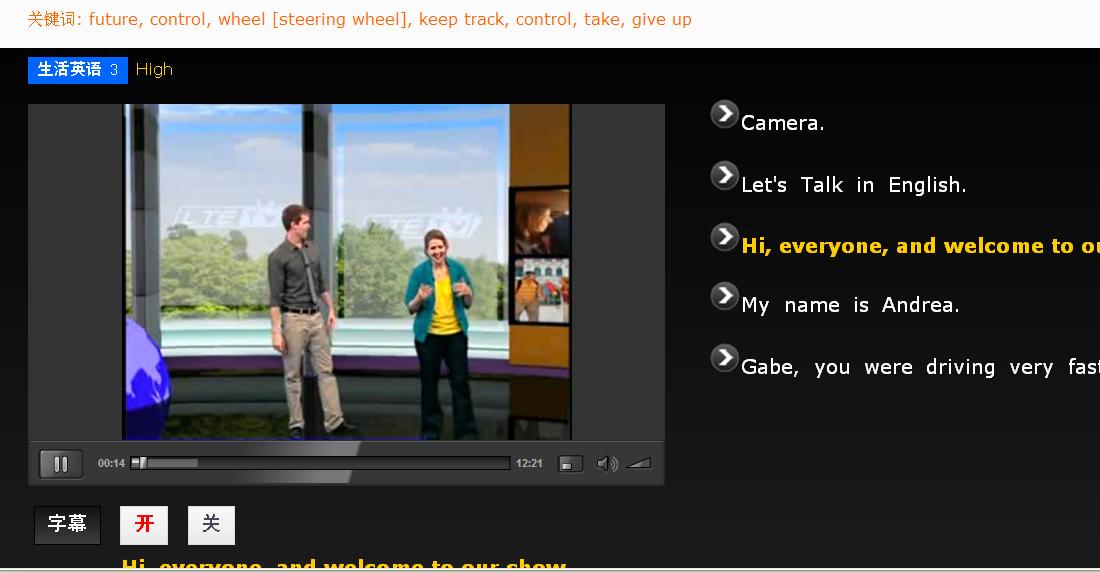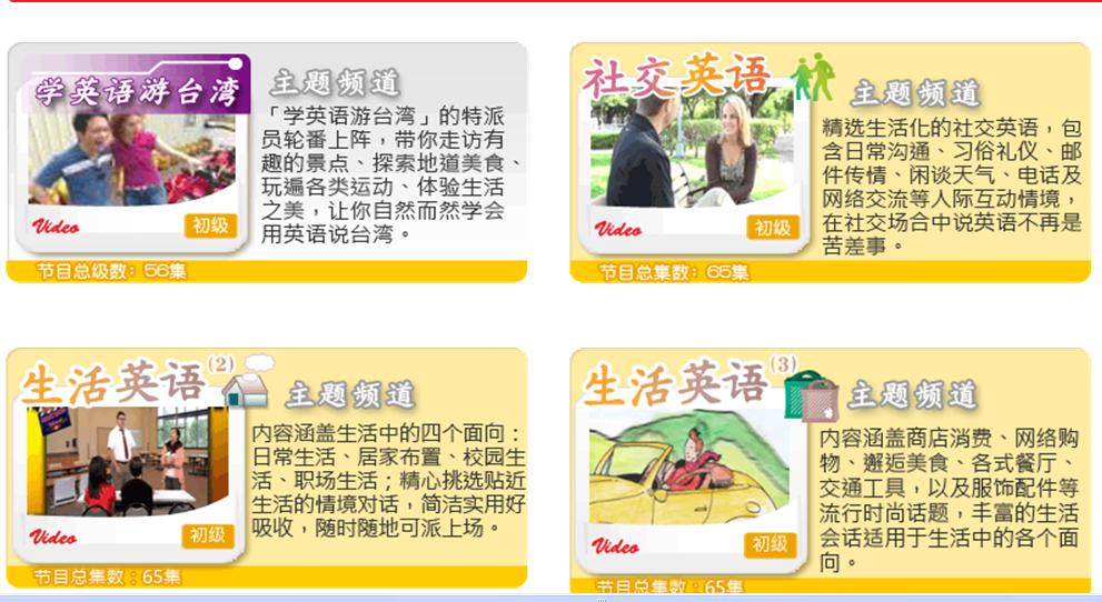 “空中英语教室英语学习节目音像库”采用“空中英语教室”的视频内容,拥有适合不同阶段的英语爱好者。分为大家说英语、空中英语教室和彭蒙惠英语三个不同层次的视频教学节目每年播出约25分钟的视频节目共930集,并有各类主题式学习频道,满足对主题学习英语的需求。现已成为众所周知的英语学习软件,产品以轻松活跃的视频剧情形式呈现丰富多彩的情景对白,推送外教正宗英语。让学生抛开课本,营造轻松幽默的环境让学习者享受英语口语学习的乐趣,并且在愉快的心情中提高英语听说能力。