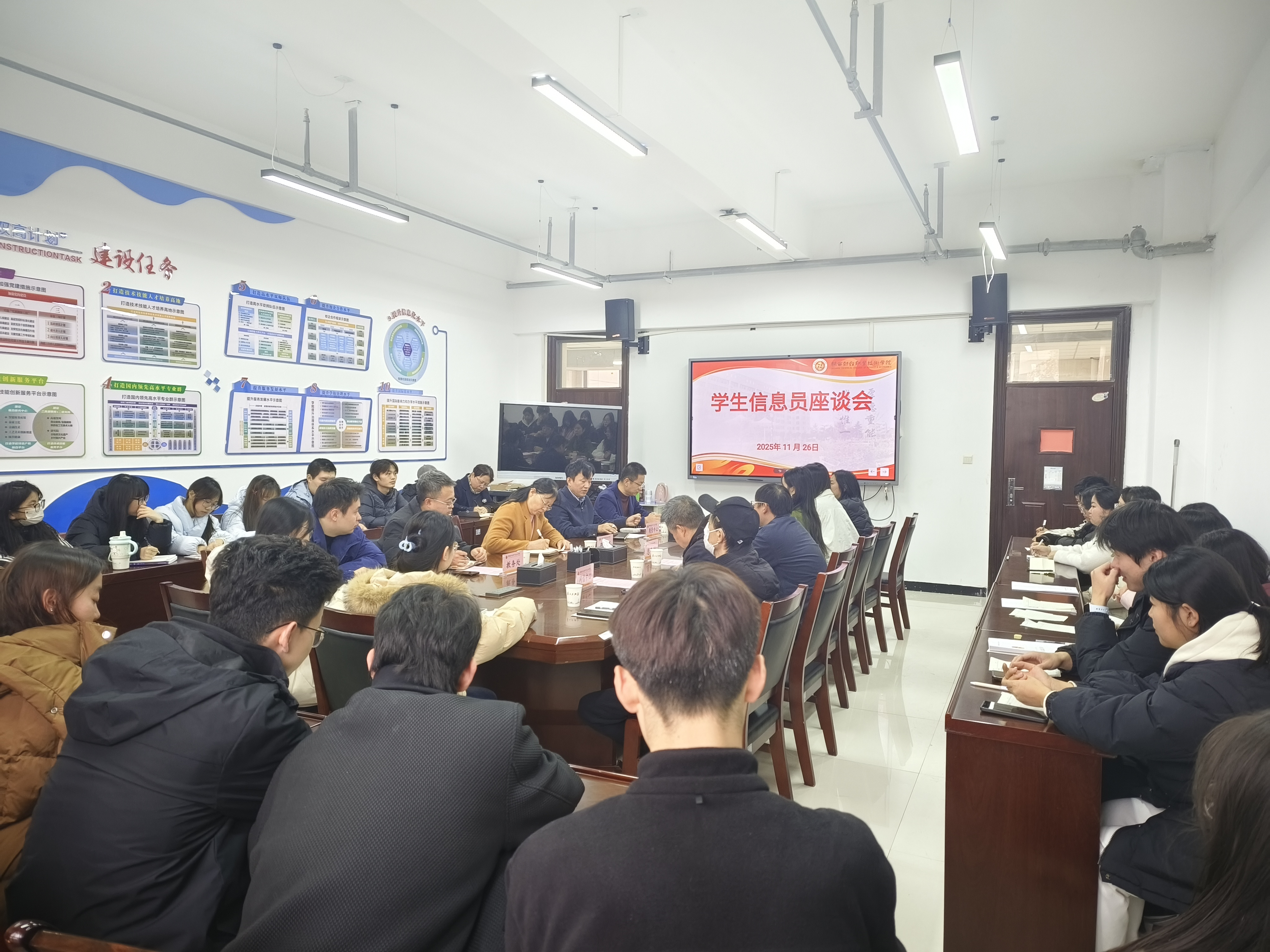 为进一步强化教学管理效能,持续提升学校育人水平,搭建师生高效沟通桥梁,11月26日,我校2025-2026学年第一学期学生信息员座谈会在综合楼307会议室召开。党委委员、宣传部部长严丽丽出席会议并作总结讲话,教务处、团委、总务处、学生处、图书馆、网信中心等相关职能部门负责人,以及来自各学院的30余名学生信息员代表共同参会。会议由教学质量管理中心副主任王国辉主持。