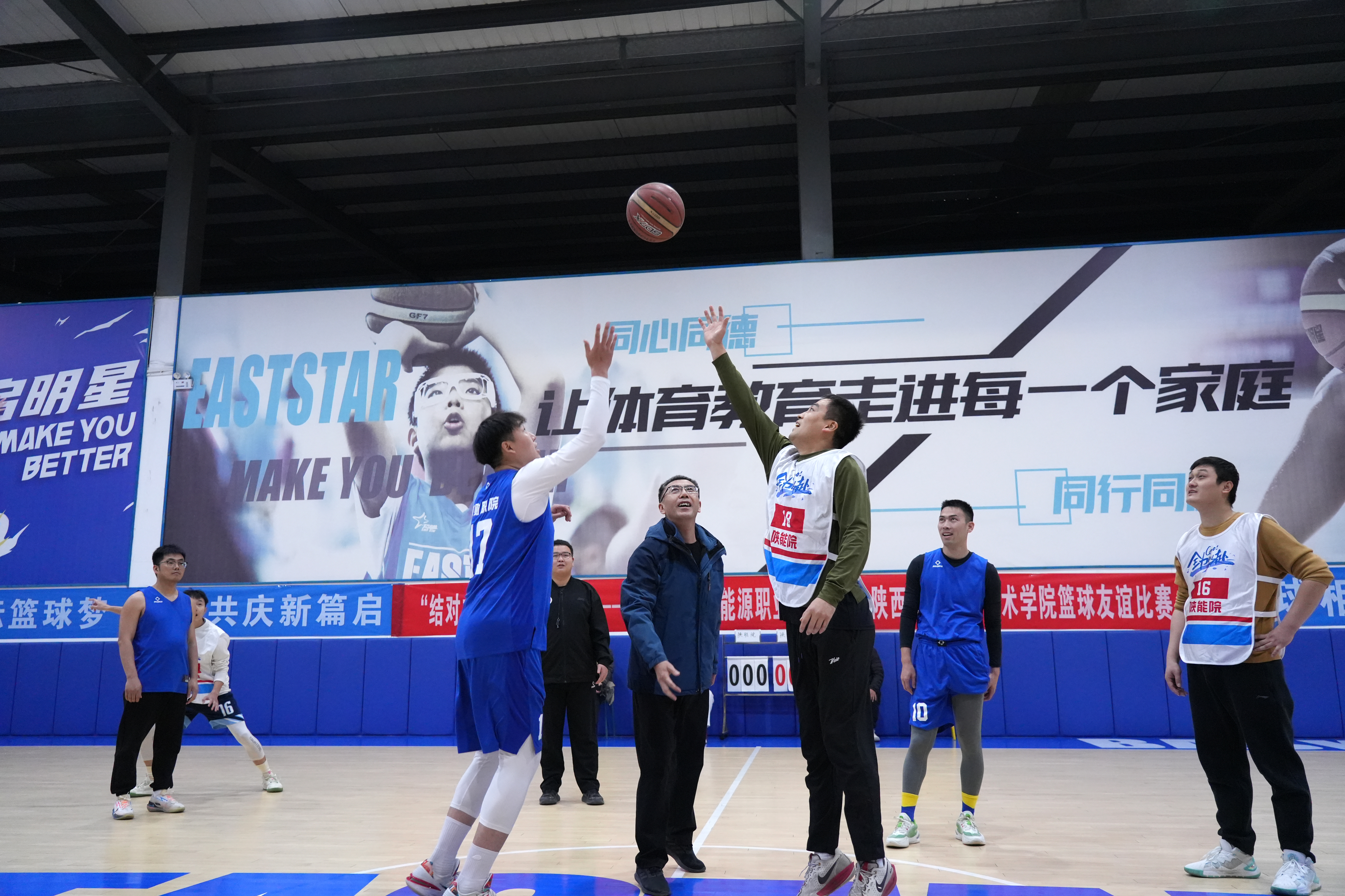 为深化校际交流,凝聚奋进力量,以实际行动践行“结对共建、争创一流”的目标,2025年12月5日下午,陕西财经职业技术学院与陕西能源职业技术学院“结对共建、争创一流”2025年教职工篮球友谊赛在东方启明星篮球馆激情开赛。本次活动由两校工会联合主办,旨在以体育竞技为纽带,搭建互通互鉴的桥梁,营造昂扬向上的校园文化氛围。