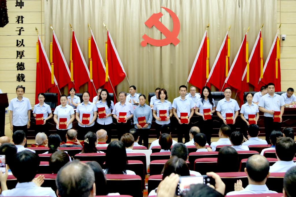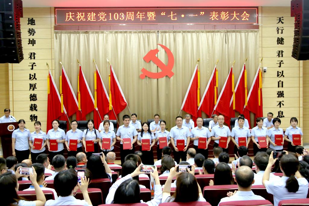 7月1日下午,我校在学术报告厅隆重召开庆祝建党103周年暨“七·一”表彰大会。校领导班子成员出席会议,全校处科级干部、教职工党员和离退休党员、学生党员代表参会。会议由党委副书记朱华斌主持。