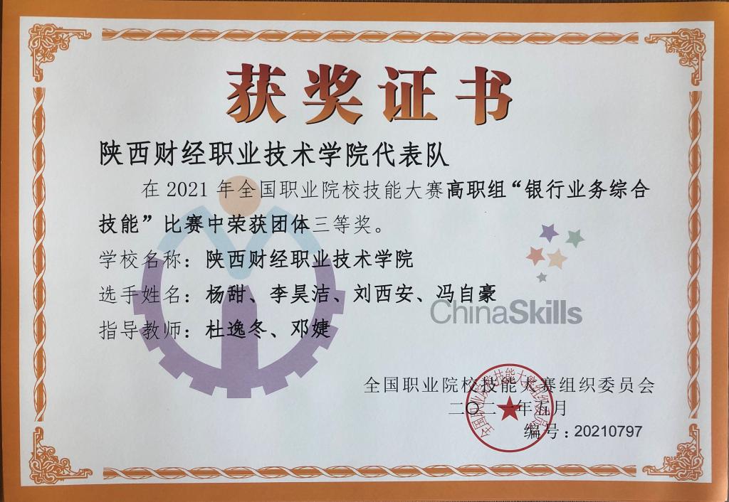 2021年6月10日至6月11日,全国职业院校技能大赛高职组“银行业务综合技能赛项”在山东外贸职业学院举行。我院参赛队代表陕西省参加本次国赛,经过紧张激烈的角逐,我院代表队最终荣获团体三等奖。