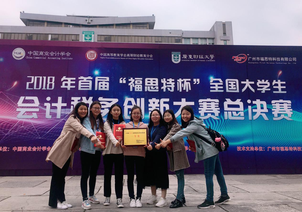 2018年12月8日首届“福思特杯”全国高等职业院校会计税务创新大赛总决赛在广东财经大学隆重举行。会计学院学生卫欣怡、杨盼、张婷、张洁蓉、郝珍珍组成的代表队参加并荣获一等奖,薛媛、高巧利为指导老师。