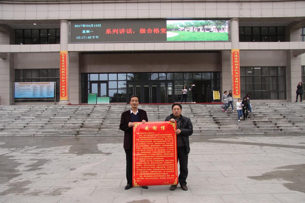 4月10日下午,张星的父亲及家人冒着雨从商洛柞水送来了锦旗和感谢信,衷心地感谢我院的全体师生对张星的爱心捐助,学院副院长张秦龙代表学院接收了锦旗和感谢信。副院长张秦龙、学生处副处长郭宝东、会计三系主任邓迪夫、专职副书记张晓战、辅导员王亚凤等和张星的家人进行了交流,进一步了解张星同学的治疗情况。