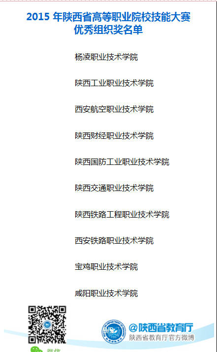 近日,陕西省教育厅官方微博公布了2015年全省高等职业院校技能大赛获奖名单,在会计技能赛项和市场营销技能赛项中,我院均荣获团体一等奖,并凭借出色的战绩和团队合作精神荣获“2015年陕西省高等职业院校技能大赛优秀组织奖”。