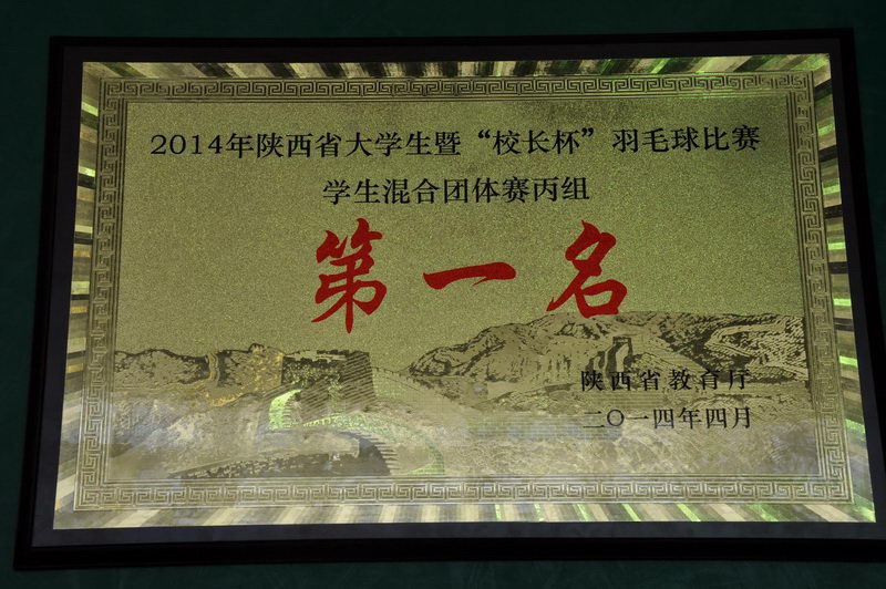 由陕西省教育厅主办,陕西省学生体育协会和西北农林科技大学承办的2014年“薰风杯”陕西省大学生暨“校长杯”羽毛球比赛于4月25日至27日在西北农大体育馆举行,我院羽毛球队经过奋力拼搏,获得了大学生混合团体赛丙组冠军。