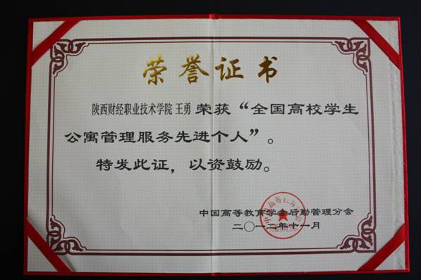 11月23日,中国高等教育学会后勤管理分会学生公寓专业部在贵州省贵阳市举行了“中国高等教育学会后勤管理分会学生公寓专业部2012年年会暨全国高校学生公寓工作先进单位及先进个人表彰大会”。全国教育系统800余名代表参加了此次会议。会上,我院学生工作处王勇同志荣获“全国高校学生公寓管理服务先进个人”荣誉称号。