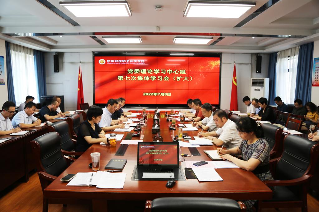 2022年7月8日上午,我校在办公楼四楼会议室召开党委理论学习中心组第七次集体学习会。领导班子成员、各部门党政负责人参加,会议由党委书记张志华主持。
