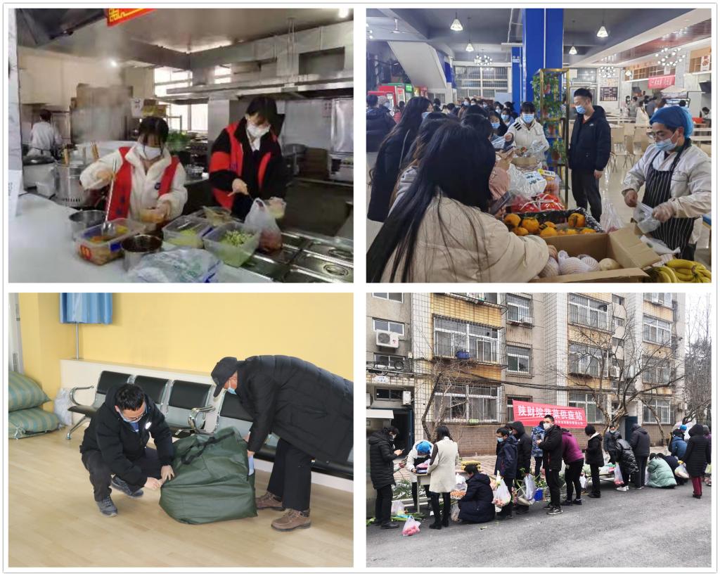 为扎实落实陕西省教育系统疫情防控视频会议精神,进一步提高疫情防控措施落实的主动性、针对性、时效性和有效性,应对南北两院封闭管理、严禁出入、独立管理,学院新冠疫情防控工作领导小组决定成立学院疫情防控工作专班。12月25日至28日,院长程书强深入一线指导督导疫情防控工作,要求食堂超市想方设保障物资供应、保证饭菜质量不降、价格不涨,并就师生反映的“一碗面”、水果、超市、被褥等问题迅速做出部署,学院疫情防控工作专班立即行动,于25日晚为每一位在岗住校的员工发放了被褥,于26日为每位师生发放了口罩,于27日在家属院配置了蔬菜供应点,于28日腾空库房筹建“同心超市”,于29日为在办公室住校的职工配置了单人床、为室外执勤人员搭建了帐篷,于30日为南院学生提供了一碗“温情面”,于31日为南院学生调配了水果、为室外执勤人员配发了电暖器……