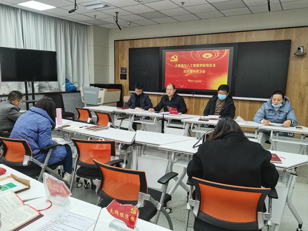 2021年12月13日下午,大数据与人工智能学院党总支在综合楼516智慧教室组织党员开展“四史集中学习会”。
