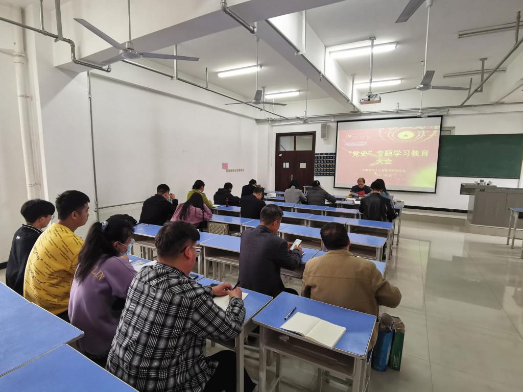 大数据与人工智能学院党总支3月31日下午在综合楼514教室召开了党史学习教育动员部署大会,并于4月7日下午在综合楼514教室开展“党史”专题学习教育活动,大数据与人工智能学院全体师生党员参加学习,会议由党总支书记曹耀辉主持。
