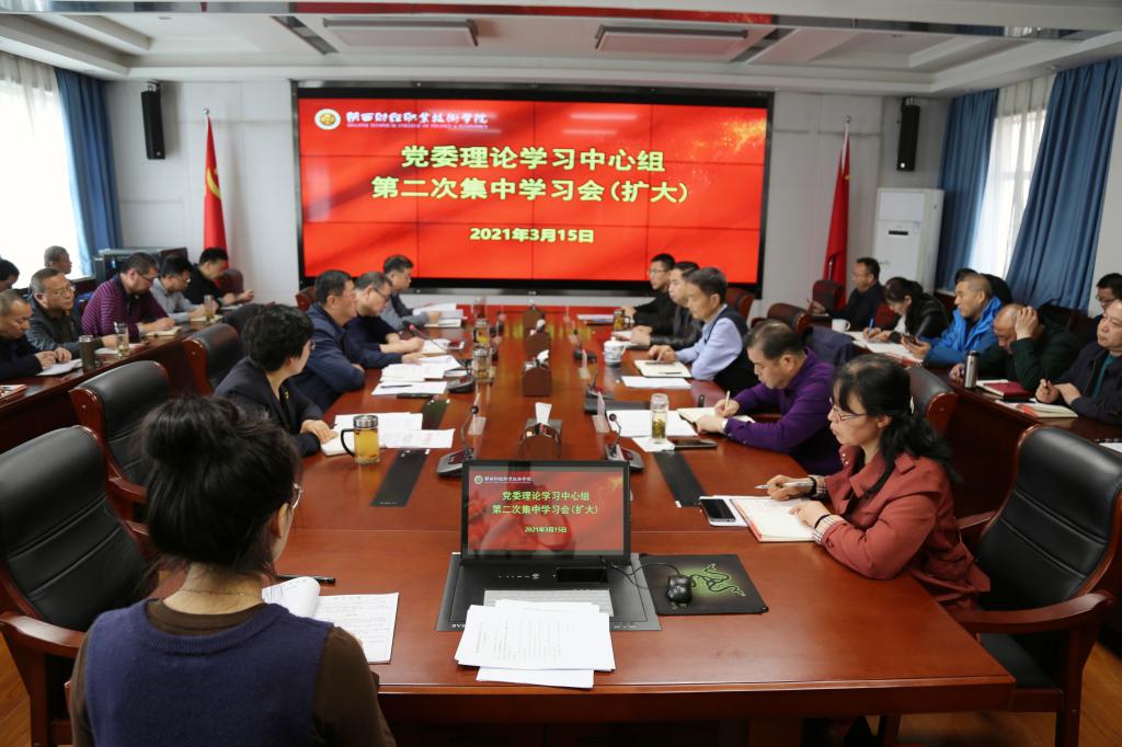 3月15日上午,我院在办公楼四楼会议室召开党委理论学习中心组第二次集中学习(扩大)会议,学院领导班子成员、处级中层干部和直属党支部书记参加,党委书记张志华主持。