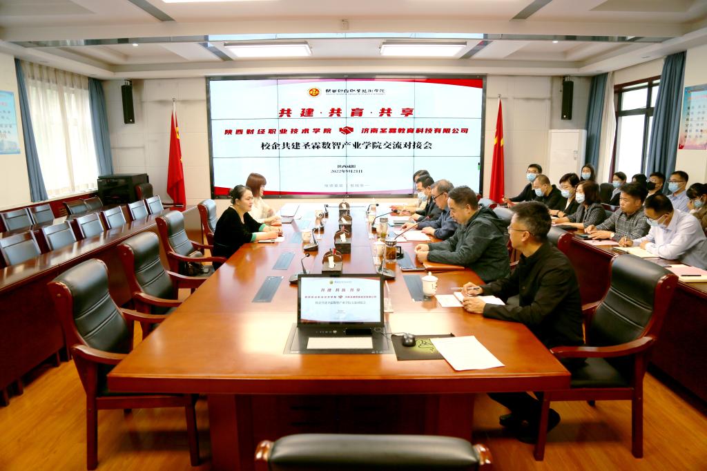 为适应以“云大物智移”为支撑的“数字经济”、“三链融合”现代服务业新时代的到来,切实夯实“国双高”专业群和“省双高校”立项基础,2022年9月21日上午,我校校企共建圣霖数智产业学院交流对接会在办公楼四楼会议室举行。济南圣霖教育科技有限公司总经理韩苗苗及总经理助理赵硕真以及我校院长程书强、副院长王勇出席,教务处、继续教育与职业技能培训学院(乡村振兴学院)、人工智能与大数据学院、商学院处科级干部及专业骨干教师代表参加。