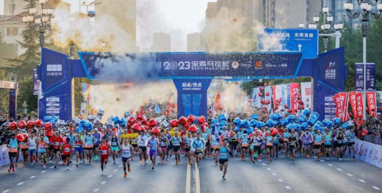 10月15日上午7时30分,吉利银河·2023宝鸡马拉松赛在陕西省宝鸡市行政中心广场鸣枪开跑,比赛吸引了全国各地职业选手及路跑爱好者共2万人的热情参与。