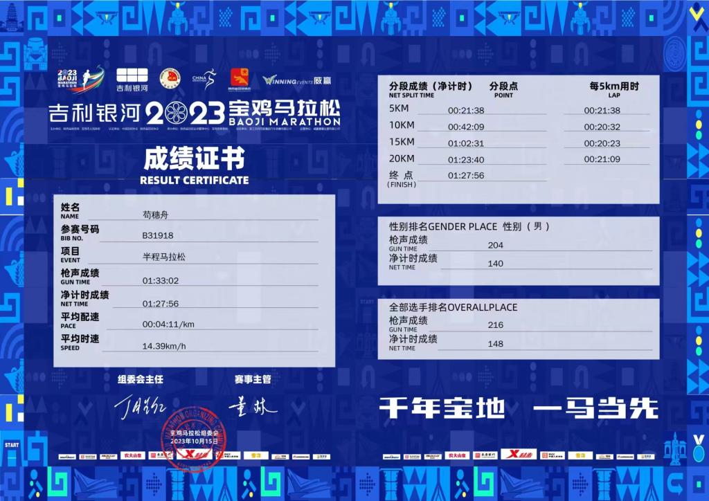 我校数字商务学院教师苟穗舟报名参加了本次半程马拉松赛事。经过1小时27分钟56秒,苟穗舟老师安全顺利的完赛,并在8000名参赛选手中获得第148名。苟穗舟常年坚持长跑,曾多次参加马拉松比赛并取得优异的成绩,充分展现了我校教师勇于拼搏、坚韧不拔的意志品质和朝气蓬勃、积极向上的精神风采。