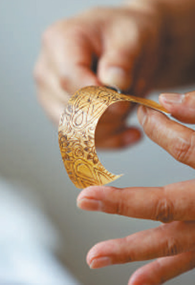 Une artisane en train d’élaborer des pyrogravures