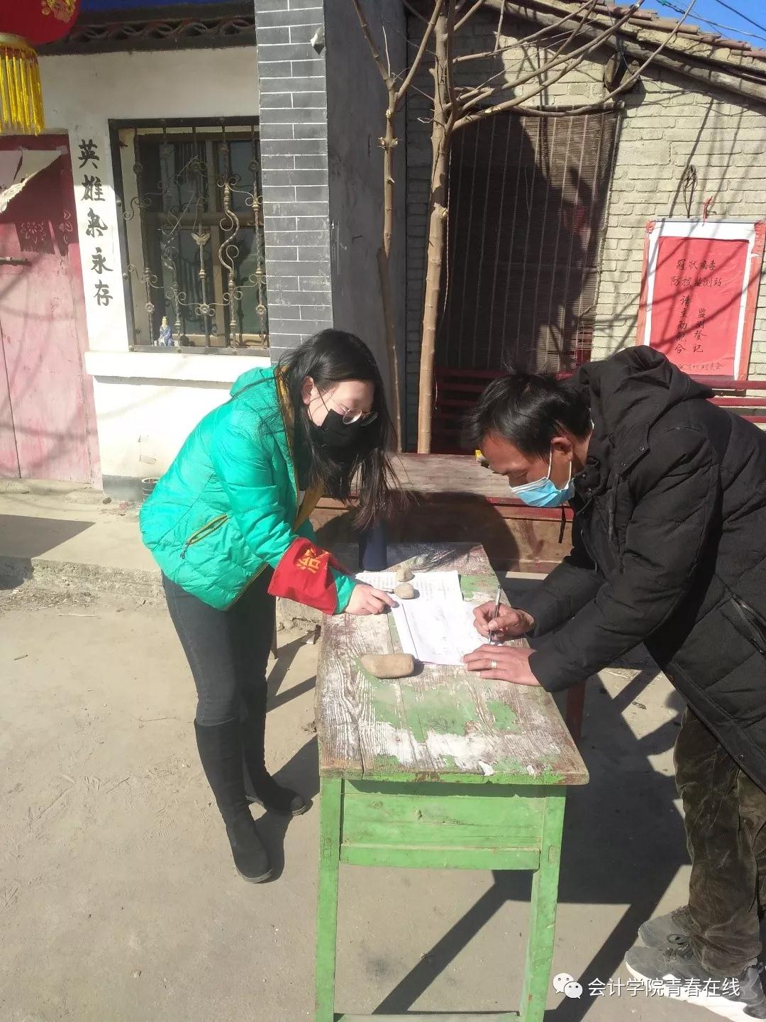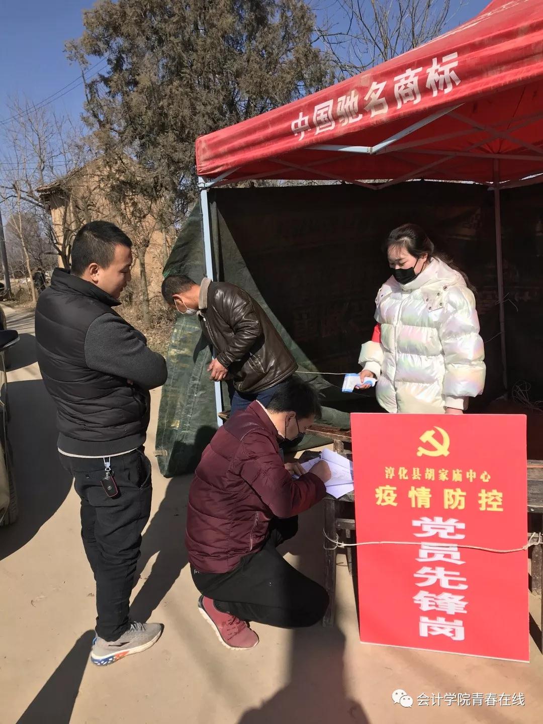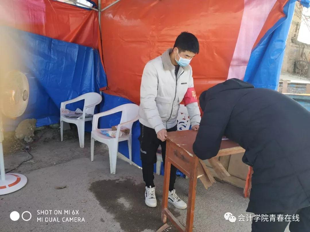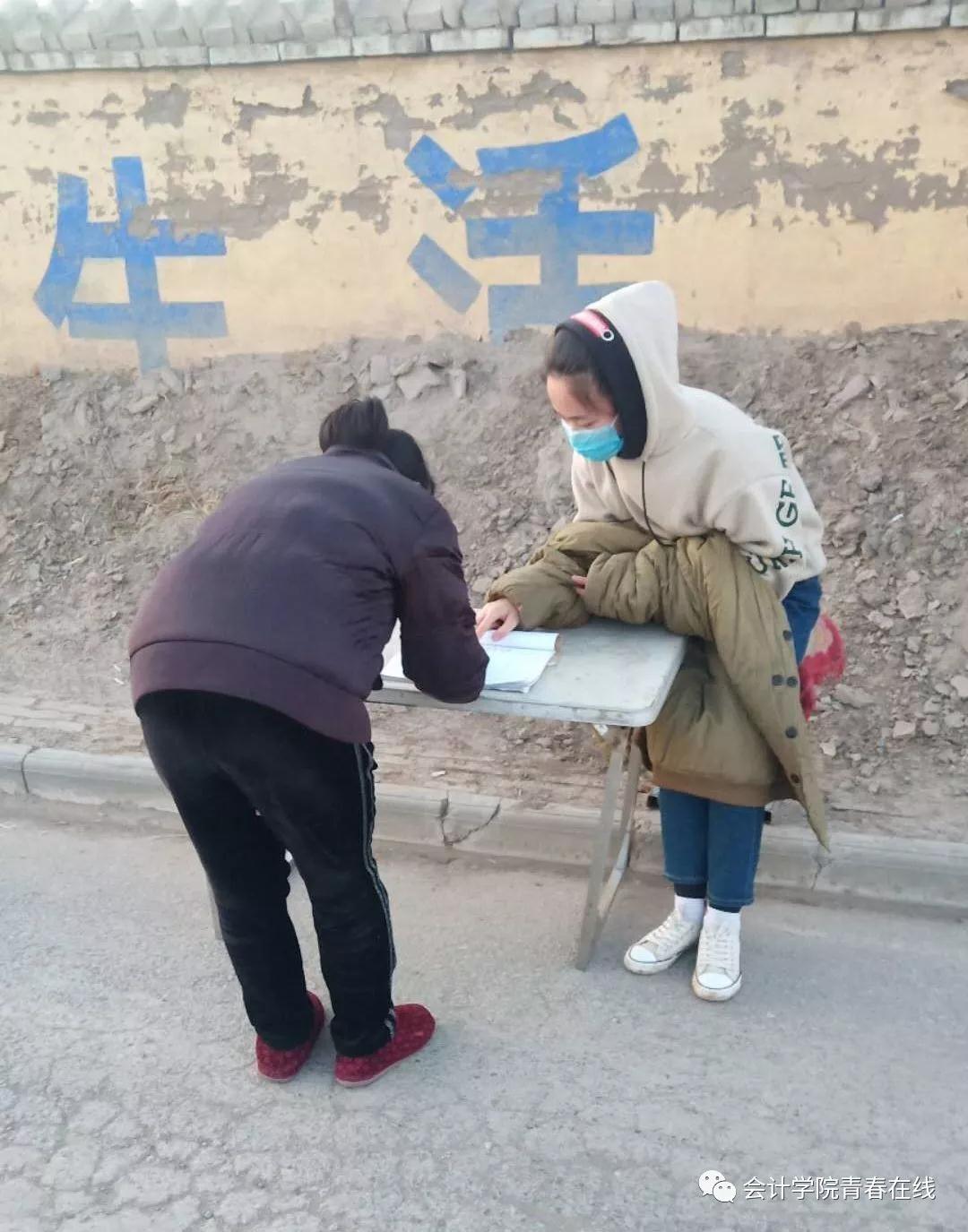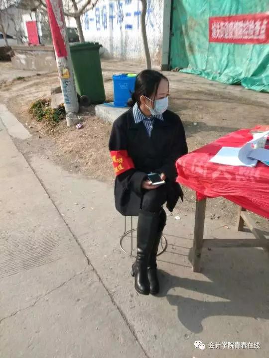闫丹丹,我校用友•新道会计学院1831会计23班班长,优秀学生干部。在得知村里面招募志愿者的时候,她作为一名预备党员,第一时间主动找村主任报名,参加村里防护疫情工作,她也是他们村唯一一个大学生志愿者。