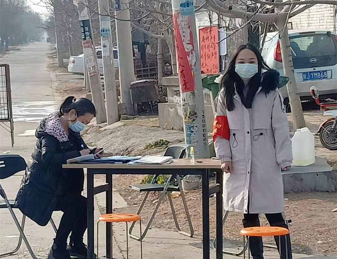 闫丹丹跟着村民居委会主任在村口往返点执勤,每天从中午1点到下午6点,登记进出村人名。起初村里人觉得疫情不严重,不当回事,都不戴口罩,通过村民居委会主任、执勤人劝说,现在大家都能做好防护,还有非本村人要进村,经过她和村民居委会主任的劝说,也都原路返回,现在村里面也很少有人出去,也都意识到了疫情严重性,一起加油,一起对抗疫情!