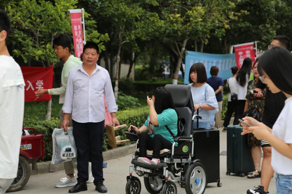 2019年8月31日是我院新生报到的日子。在人群中,一个特殊的身影吸引了周围人的目光。她说着笑着,一边看着父亲,一边神采飞扬,坐在轮椅上的她,身上散发着温润的气质。