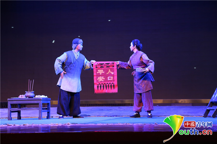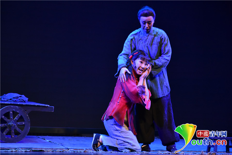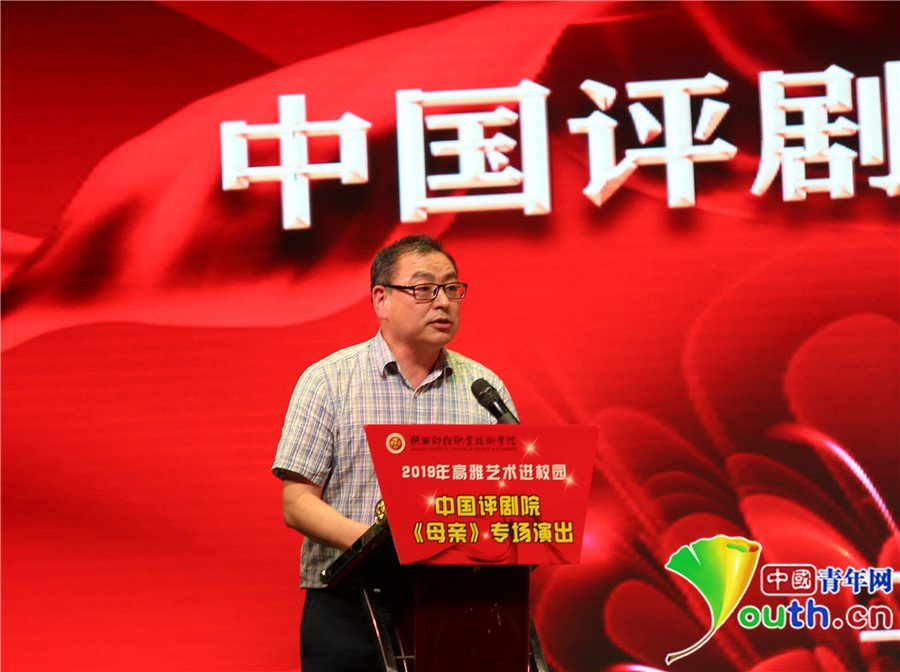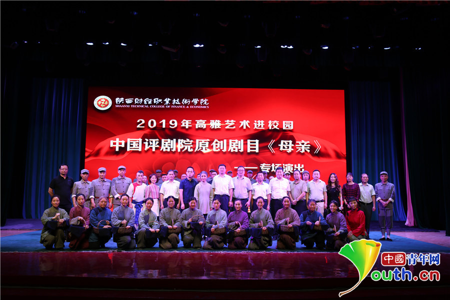 中国青年网西安6月18日电(记者 代红玉 通讯员 王炅)6月17日晚, 2019年高雅艺术进校园之中国评剧院大型原创剧目《母亲》在陕西财经职业技术学院上演。