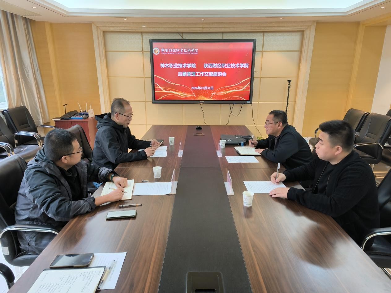 2024年10月31日,神木职业技术学院后勤管理处主任折威龙、干事高辰昊一行2人来我校就后勤管理工作进行交流座谈。总务处处长达航行、膳食科科长吴楠、膳食科科员李卓远参加了交流座谈。