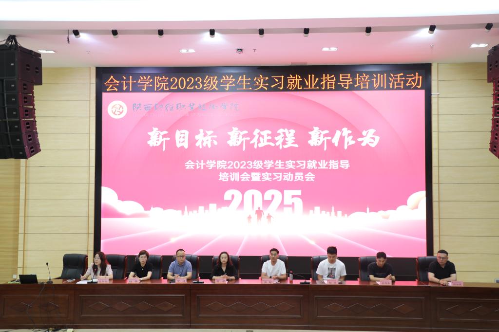 为贯彻落实国家及陕西省毕业生就业推进工作会议精神和政策,切实做好会计学院2026届毕业生实习就业工作,全力推动毕业生更加充分、更高质量就业,会计学院于5月26日-28日举办2026届毕业生实习就业指导培训会暨实习动员会。会计学院院长常茹、党总支书记贺适、专职副书记赵静,聚粒财经商学院发起人汤超、聚粒财经商学院运营总监赵琪、聚粒财经商学院品牌经理孙伟伟、聚粒财经商学院产业导师郭伯域及全体2026届毕业生参加了培训会。会议由会计学院副院长张炳红主持。