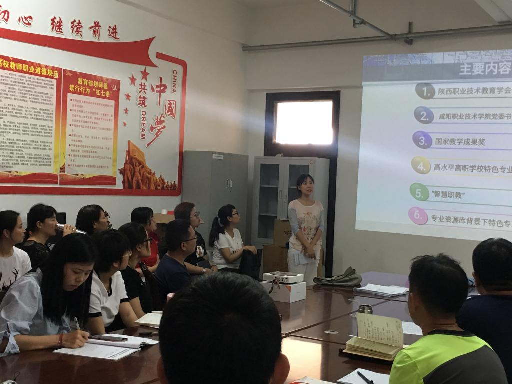 李曦参加的是“2019年陕西省高等职业教育高水平专业建设与课程改革研讨会”她从职业教育国家级教学成果奖及其培育、高水平高职学校和专业群建设与实践、“智慧职教”服务专业与课程建设的思考与探索、国家专业教学资源库背景下特色专业群建设等方面进行了详细分享,并表示在今后的教学工作中要不断总结、凝练、提升,做到边研究边实践、边实践边总结、边总结边推广、边推广边提升。