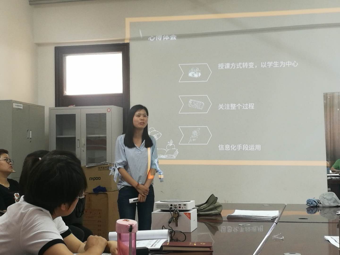 会上,王莲云以《聚焦金课推动课堂革命》为主题进行了分享,她说此次培训主要围绕教学能力大赛进行,并结合研修谈了自己的感悟:一是师生互动是“课堂革命”最好的切入点和最佳评判点,有助于革除当下知识本位、教师主体、教室局限的弊端;二是关注教学过程课前、课中及课后的不同阶段,让学生真正参与;三是运用信息化教学手段加强课堂创新,用理论指导实践。