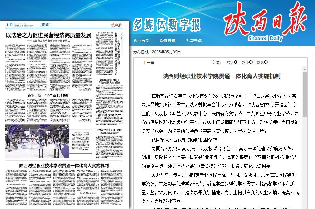 未来,陕西财经职业技术学院将继续积极响应区域经济发展需求,通过动态调整招生规模与专业设置、系统创新校政合作机制、持续提升育人成效,破解中高职衔接的机制壁垒,构建“招生—培养—就业—服务”的全链条育人生态,实现人才培养质量的跨越式提升,为区域经济输送大量高技能人才,为西部职业教育高质量发展贡献独具特色的“陕西方案”。