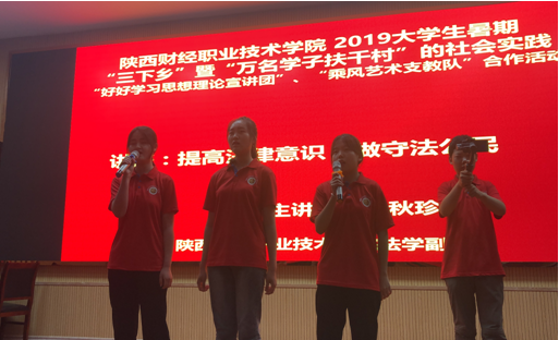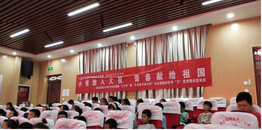 2019年7月16日,清晨下起了淅淅沥沥的小雨,我们伴随着凉爽的天气,开启了今天的准备工作。乔老师与队员们一同来到学术报告厅,大家各司其职忙碌在各自的岗位上。挂横幅,调话筒,调灯光,在一系列的准备下我们完备了前期工作。下午在经历紧张的排练后,四点时分,由“好好学习思想理论宣讲团”和“乘风艺术支教队”在柞水城区三小报告厅合作举办新时代中国特色社会主义思想宣传系列讲座及文艺演出活动。整个活动过程由“情系三农服务调研队”负责拍摄。