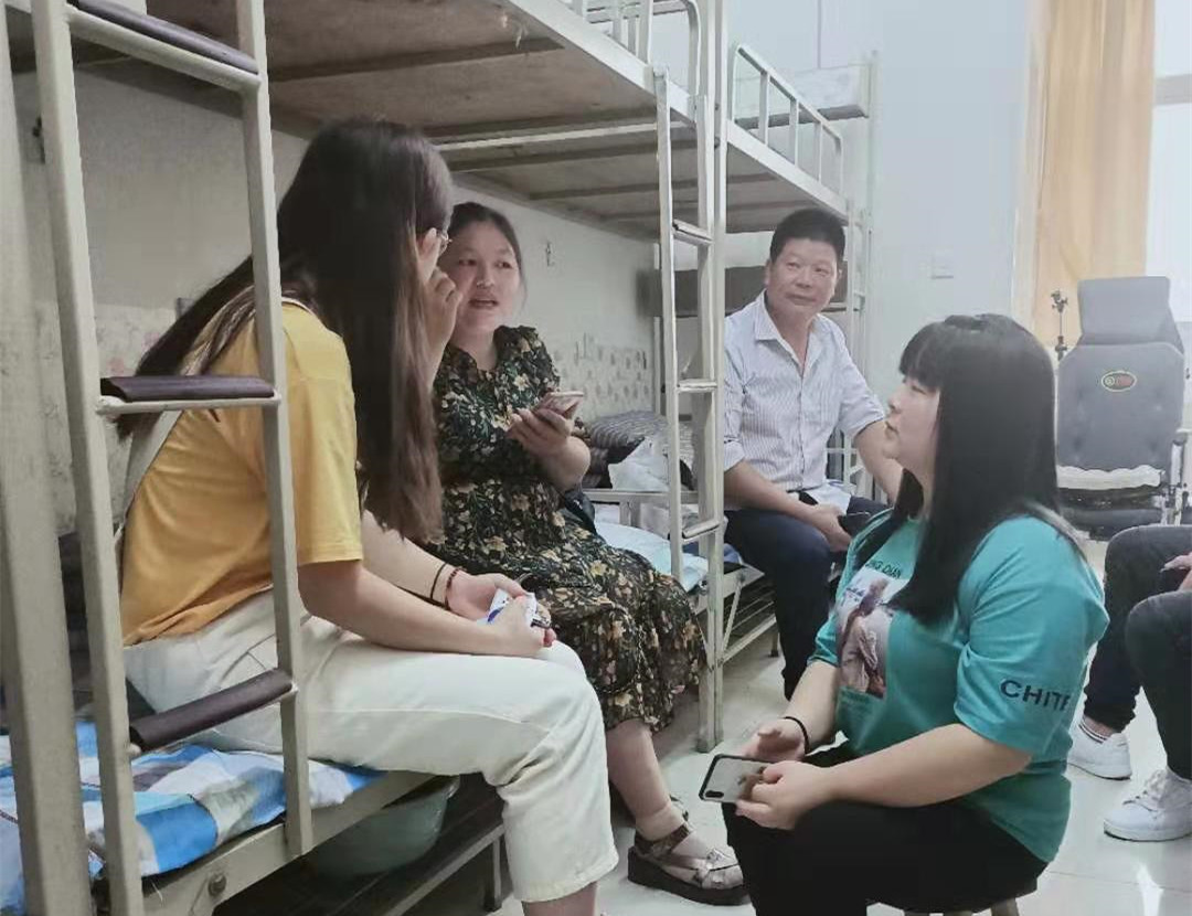 对大学生活充满了期待的康厚密怀揣了一丝忐忑,在父母的陪同下,来校报到了。让她意外的是,刚进校就得到了学院宿管阿姨以及学院领导们的关心。学院院长程书强,副院长于新和、雷旭及管理学院的领导和学管老师纷纷来到宿舍看望康厚密同学。大家在了解她了的具体困难之后,对她乐观向上的态度、自强不息的意志表示赞赏,并鼓励她好好学习,有任何困难都可以向辅导员老师和宿管阿姨反映,学院会想方设法予以解决。学院启动“绿色”通道,班主任和学生干部们一条龙服务,帮助她办完入学手续。为了解决她的出行问题,学生公寓特意安排她住在一楼,并和自己要好的高中同学同宿居住。程书强特意指示有关部门,在学生宿舍外加设专门通道方便轮椅上下。