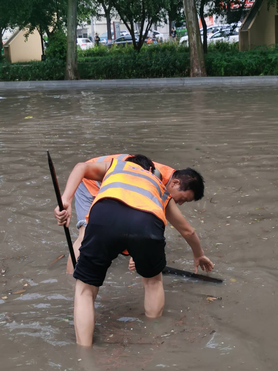 7月10日、7月30日,天降暴雨,学院大门前积水严重,影响交通,学院领导干部主动担当作为,带领职工积极清理於堵。