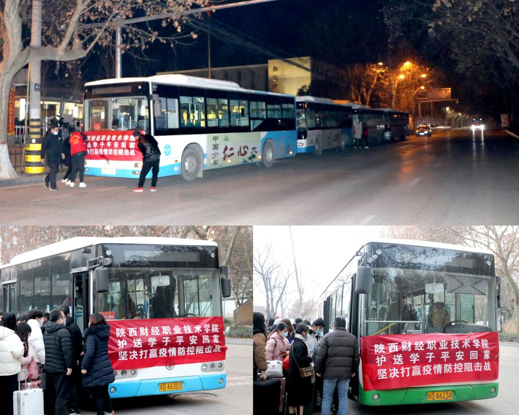 ——暖心护航,精密组织。学生回家,交通问题是关键。学校专门包车免费送学生到咸阳火车站、咸阳西站、咸阳北站乘车。对于家在咸阳地区和邻近地市的学生,学校专门联系大巴车,将同一县区的学生点对点送往高速路口或县区疫情防控卡口,由当地政府或家长接回。