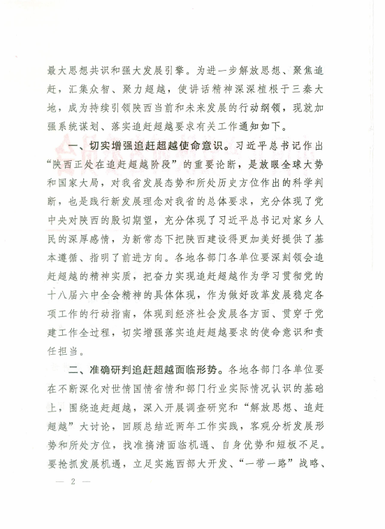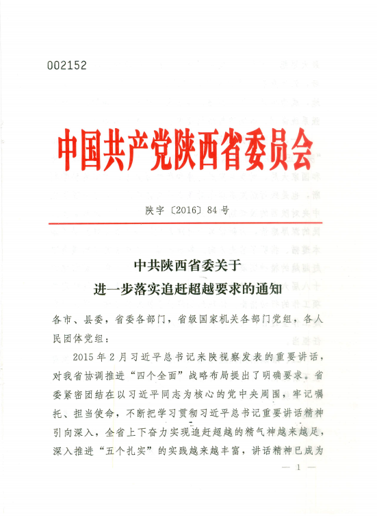 中共陕西省委关于进一步落实追赶超越要求的通知