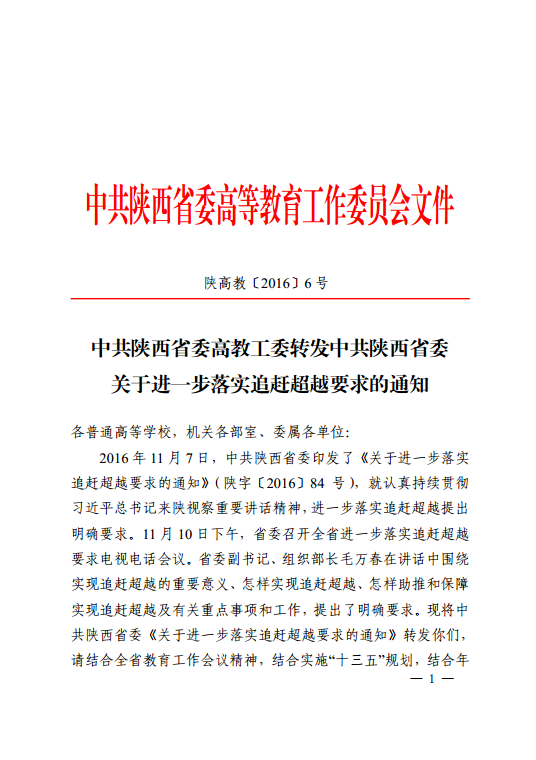 中共陕西省委高教工委转发中共陕西省委关于进一步落实追赶超越要求的通知