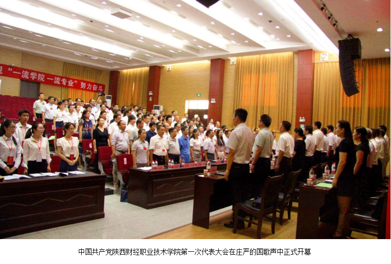 2017年7月4日上午,中国共产党陕西财经职业技术学院第一次代表大会在庄严的国歌声中正式开幕。中共陕西省委高等教育工作委员会委员、组织部部长王军周同志出席会议并讲话。学院党委班子成员、103名正式代表、3名列席代表、2名特邀代表、2名民主党派代表和1名无党派代表参加了开幕式。陕西省委组织部宣教干部处调研员周群同志出席了大会。学院院长阎平同志致开幕词。大会秘书长刘文雅同志主持开幕式。