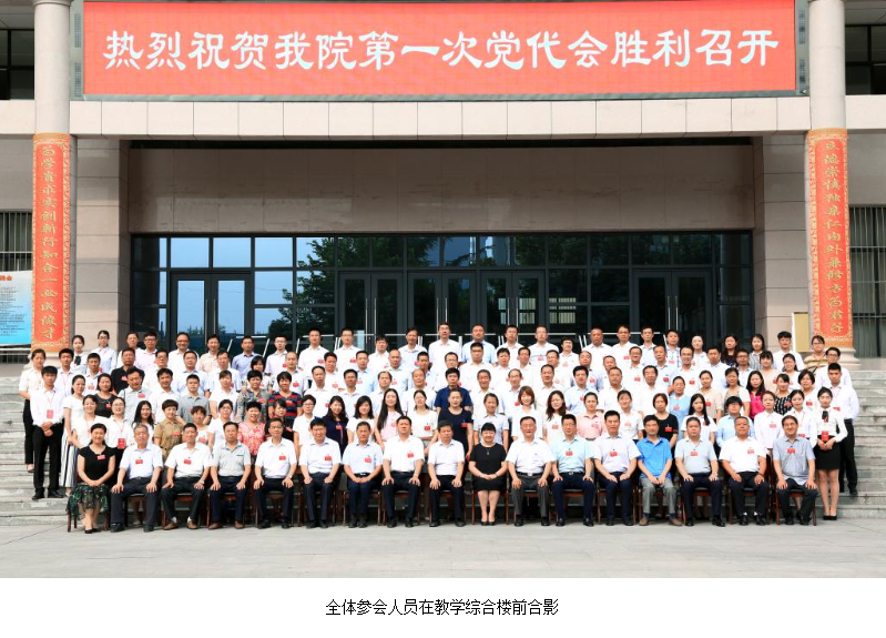 开幕式结束后,王军周、周群等上级组织领导同志与出席我我院第一次党代会开幕式的全体人员及在职和原院级领导在教学综合楼前合影。